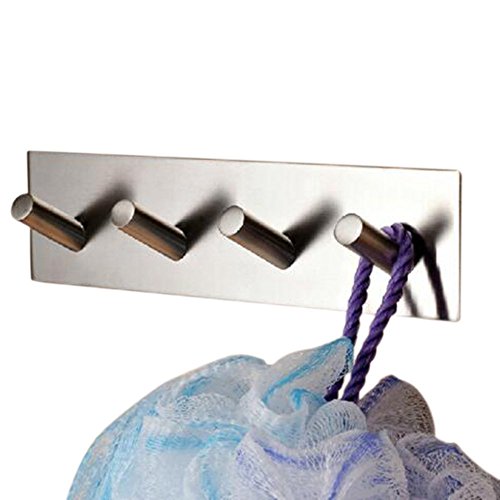 Self Adhesive Hook Key Rack Garage Storage Organizer Stick On Sticky Bathroom Kitchen Towel Hanger Wall Mount Contemporary Style, Brushed Finish 304 Stainless Steel (4 hooks)