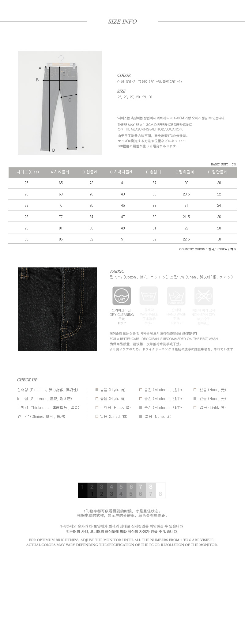 군더더기없는 베이직 스키니팬츠, 다양한 컬러로 하나하나 매력이 돋보여요! 힙라인부터 앵클라인까지 타이트한 핏이 날씬한 레그라인을 보여주는 스키니구요, 신축성이 좋아 착용감이 정말 편안해요~ s 군더더기없는 디자인에 배색 스티치로 밋밋함없는 퀄리티를 더해줬구요, 다양한 컬러 구성으로 각각 매력있게 연출할 수 있는 팬츠랍니다! 유행없는 디자인으로 매년 사랑받는 소장가치 아이템이에요^^*