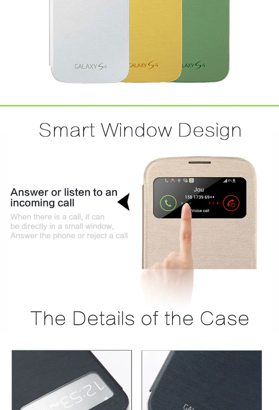 Features:Smart View With Chip Leather Flip Phone Case