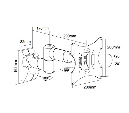 -. Binding : Electronics -. Brand : Arrowmounts -. Color : Black -. EAN : 0812768011507 -. Feature : For 23-42 inch screen. Supported screen size is shown as a guidance. It may be larger or smaller as long as the weight is within the limit. / Tilt: -20 Degree ~ +20 Degree. Swivel:180 Degree / Load Capacity: 66lbs (30kg) . TV to Wall: 4" ~18.5" (100~470mm) / VESA:50x50/75x75/100x100/200x100/200x200mm. Mounting hardware included / Bracket weight: 5.2lbs -. Label : Arrowmounts -. Manufacturer : Arrowmounts -. Model : AM-ARM1000 -. MPN : AM-ARM1000 -. NumberOfItems : 1 -. PackageQuantity : 1 -. PartNumber : AM-ARM1000 -. ProductGroup : Speakers -. ProductTypeName : AV_FURNITURE -. Publisher : Arrowmounts -. Studio : Arrowmounts -. Title : Arrowmounts AM-ARM1000 TV Mount for 23-42 Inches with 17.7-Inch Arm Full Motion 75-200mm VESA -. UPC : 812768011507 -. Warranty : 2-year limited manufacturer warranty