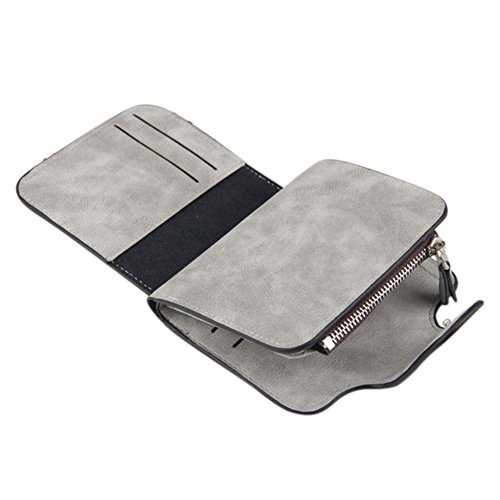 Description: Product Category: wallet for students Style: fashion concise style Suitable Crowd: female Color: rose red, light blue, brown, light pink, dark grey, grey Pattern: No Size: 11.5*9.5*1.8cm/4.5*3.7*0.7in Weight: 150g Closure: buckle button, zipper closure Structure:large-denomination note position card position, photo position and concealed compartment. Material: PU leather