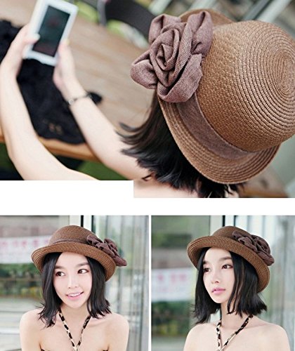 Binding : Apparel Product Description Crowns style:Dome Hat style:A wide-brimmed Eaves shape:Other main material:Straw crowd:Female style:sweet and cute Design details:Flowers Season:Summer