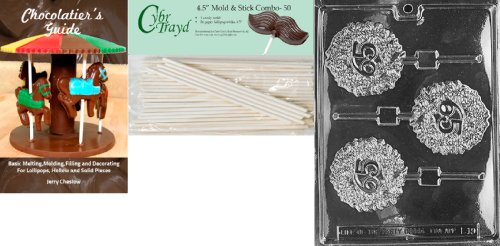 Cybrtrayd '65th Lolly' Letters and Numbers Chocolate Candy Mold with 50 4.5-Inch Lollipop Sticks and Chocolatier's Guide