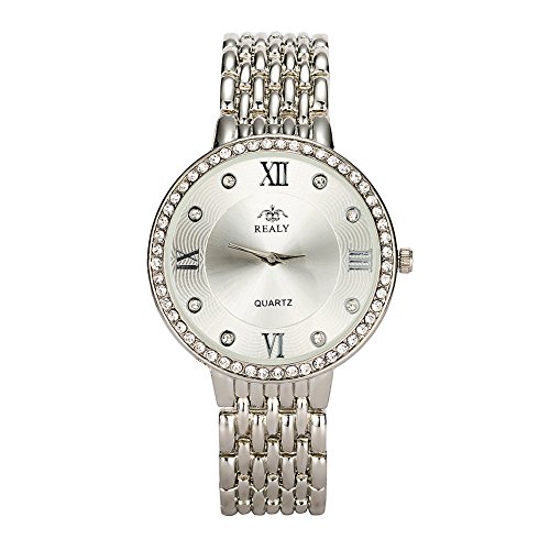 -. Title : REALY Stainless Steel Chain Link Wrist Band with Crystal Accented Round Dial Quartz Movement Wrist Watch