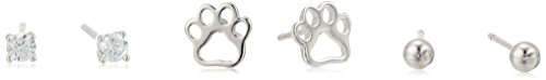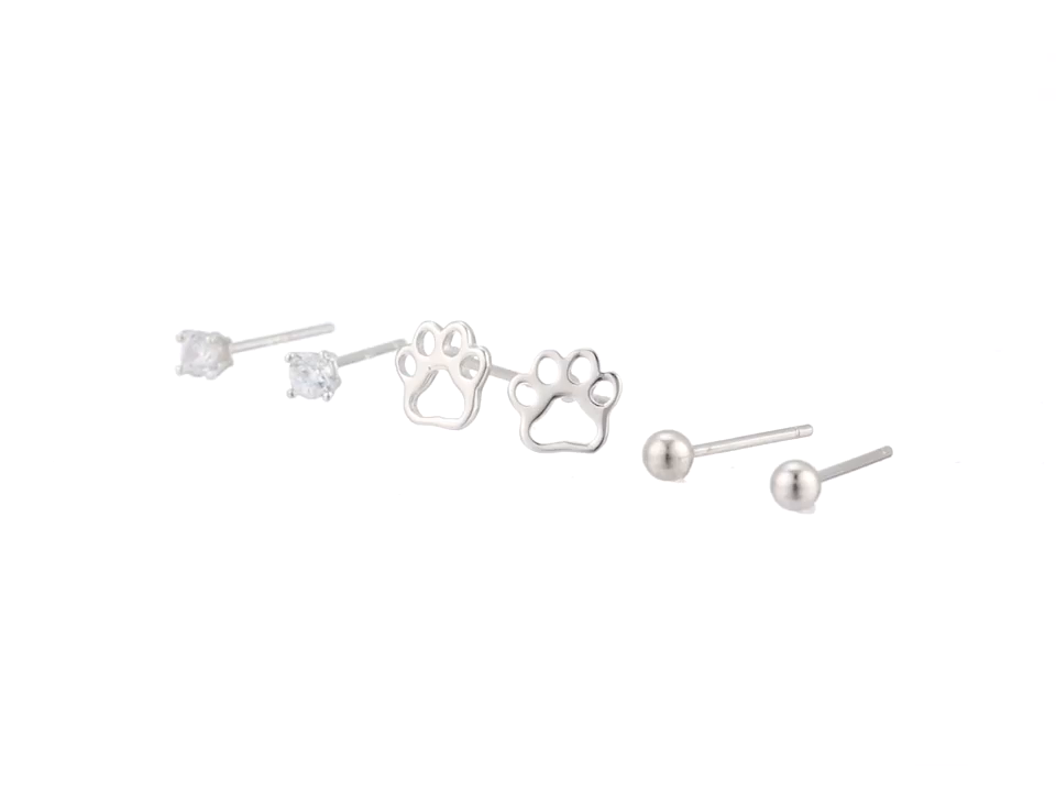 Sterling Silver Paw, Cubic Zirconia and Ball Stud Earrings Jewelry Set