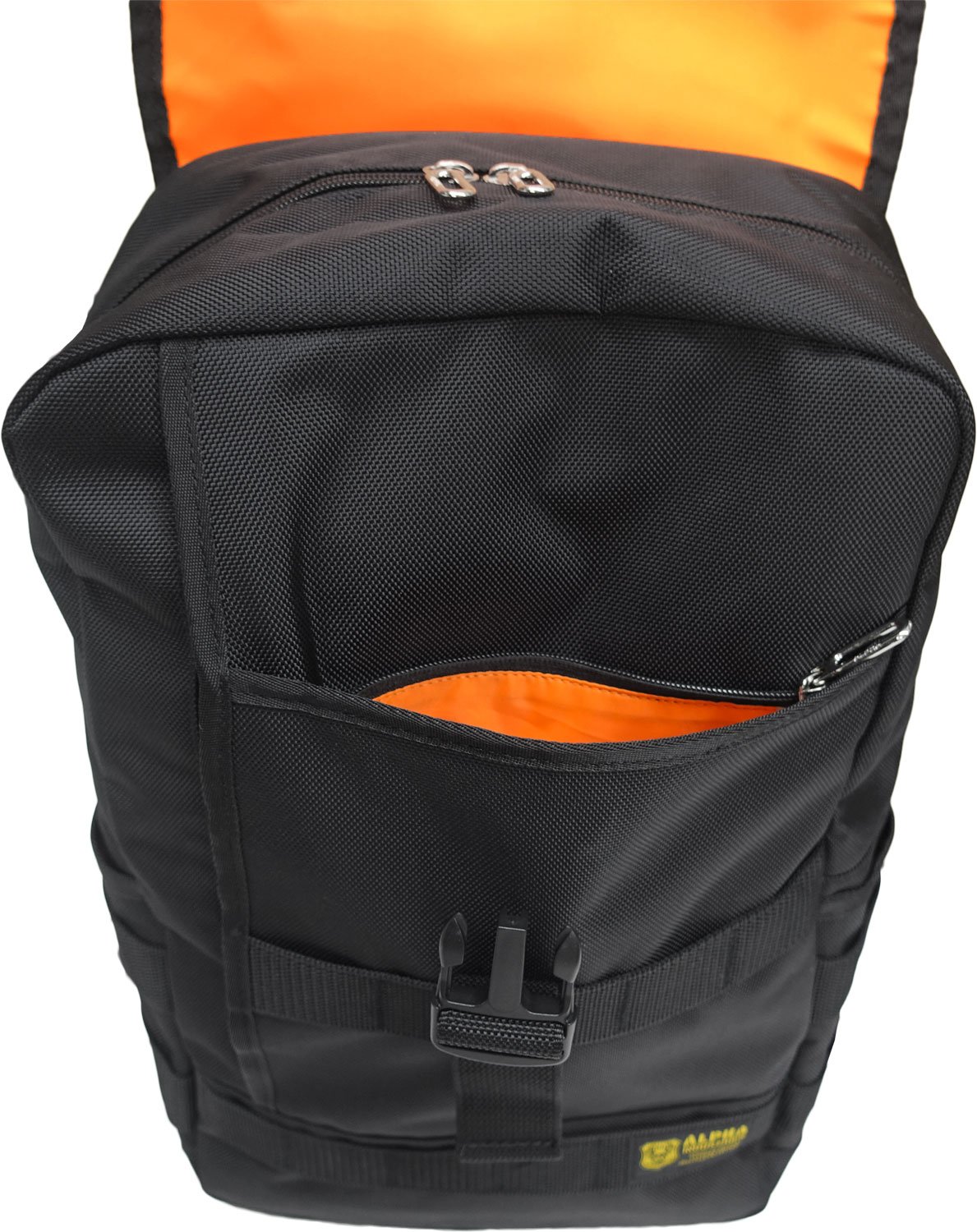 It is a large capacity daypack of Alpha Industries using a durable polyester 1680D.