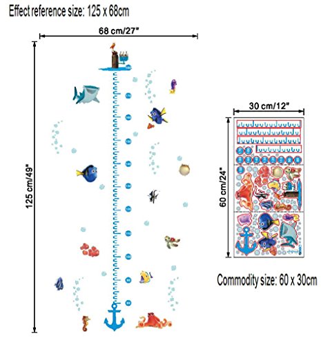 -. Title : Kemilove Cartoon Underwater Fish Turtle Shark Bubble Height Measure Chart Wall Stickers