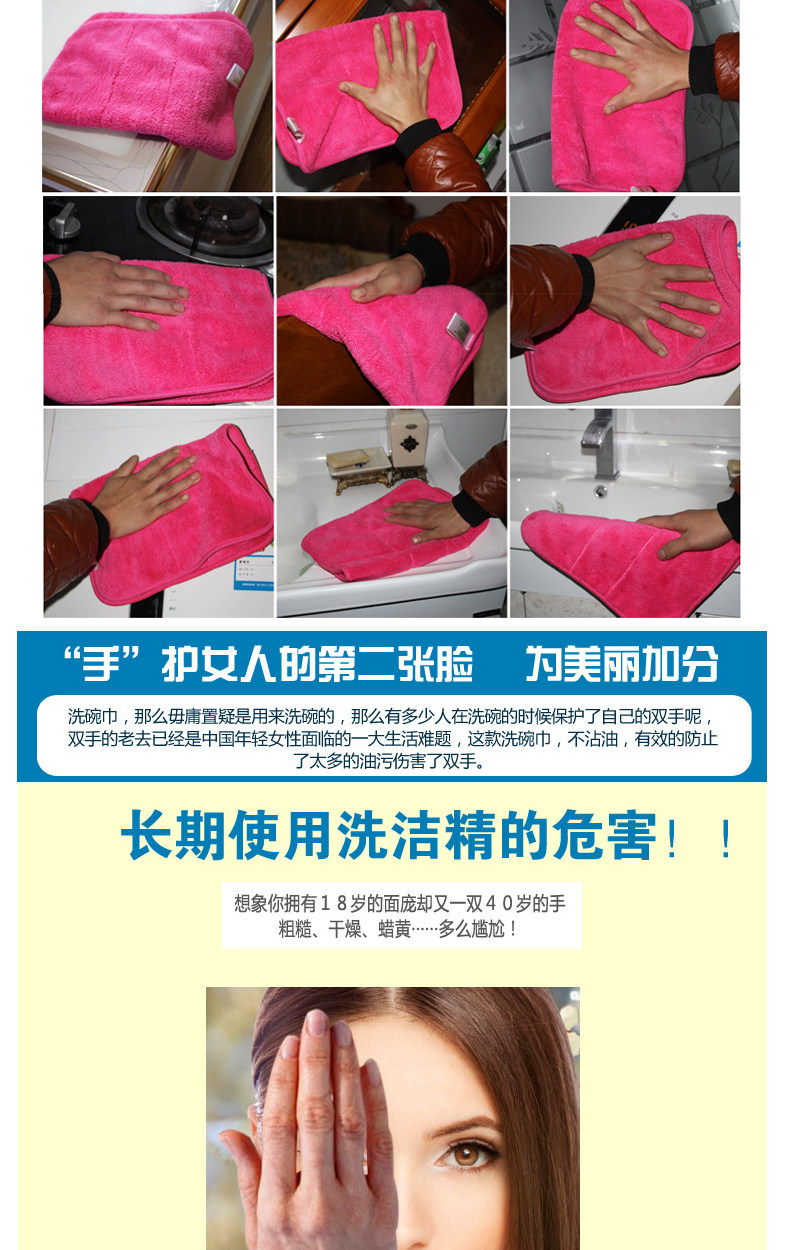 擦地抹布吸水不掉毛加厚洗碗布可挂式双层地板抹布清洁布5条装