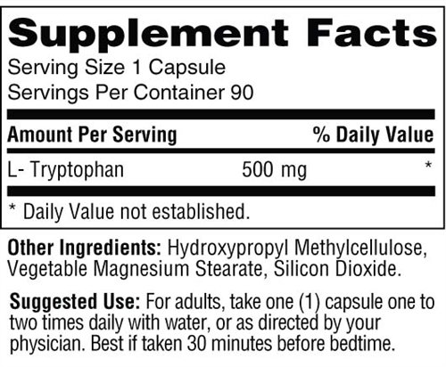 -. Title : L-Tryptophan - 500 mg, 90 Vegetarian Capsules