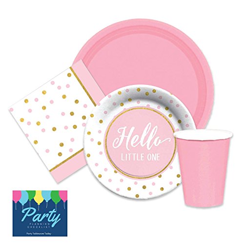 -. Binding : Toy -. Brand : PMP -. Color : green, silver -. EAN : 0715547997590 -. Feature : Beautifully Simple & Elegant Baby Shower Tableware Party Pack for 16 guests includes: / 20- Pink 9" Dinner sizes Plates / 16- "Hello Little One" Pink & Gold Foil Polka Dot Dessert Plates / 16- Matching Pink & Gold Foil Beverage Napkins &20- Hot or Cold Pink 9 oz Paper Cups / With your order, you'll also receive a Party Planning Checklist PDF to help get your party organized so you can enjoy the party too! -. IsAdultProduct : 0 -. Label : PMP -. Manufacturer : PMP -. ProductGroup : Toy -. ProductTypeName : TOYS_AND_GAMES -. Publisher : PMP -. Studio : PMP -. Title : Elegant Girls Pink & Gold Baby Shower Party Supplies for 16 Dinner Plates, dessert plates, napkins paper cups -. UPC : 715547997590