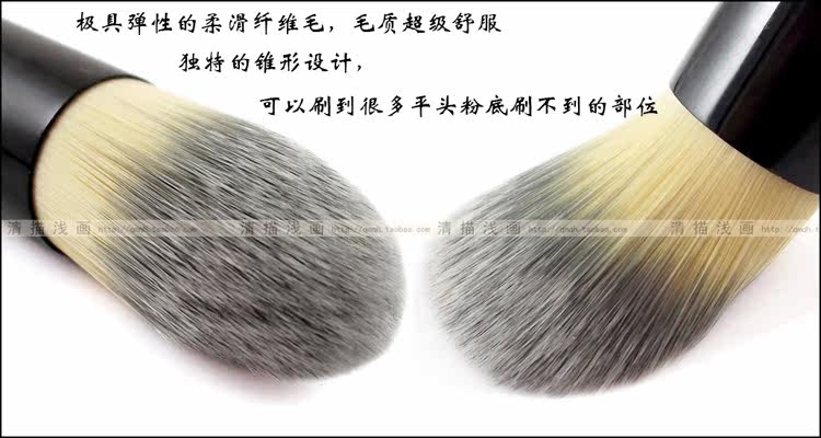 【介绍】:优质刷柄配合独特设计的锥形刷毛,可以刷到很多平头粉底刷不到的部位,独一无二的锥形粉底刷,毛质超级弹性和舒服,用它刷粉底无可挑剔。与粉底液膏霜等配合使用,对眼及鼻部等不容易刷到的地方,这款粉底刷可以在脸上不留死角哦。30秒搞定底妆更细致体贴细节部位 推荐哦!