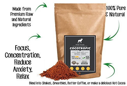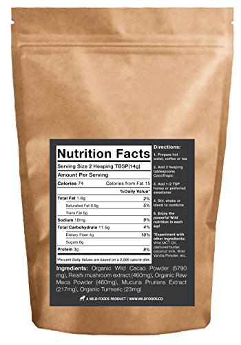 100% natural ingredients: 100% Organic Non-Alkalized Wild Cocoa powder, Reishi Mushroom Extract, Organic Raw Maca powder, Mucuna Pruriens Extract, Organic Turmeric Backed by the 100% Wild Foods Guarantee Buy any Wild Foods product risk-free.