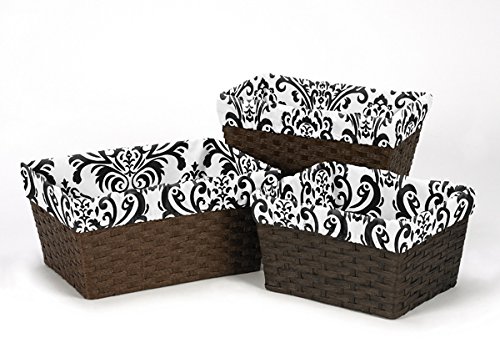 Sweet Jojo Designs 3-Piece Fits Most Black and White Damask Basket Liners for Sloane Bedding Sets