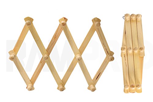Set of 2 RAM-PRO Accordion Style Wood Expandable Rack Hat, Cap, Belt, Umbrella Coffee Mug Wall wooden Pegs