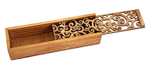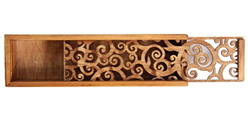 GLOBAL BOX Asian Wooden Pen Pencil Case Box (Curly Grass Pattern)