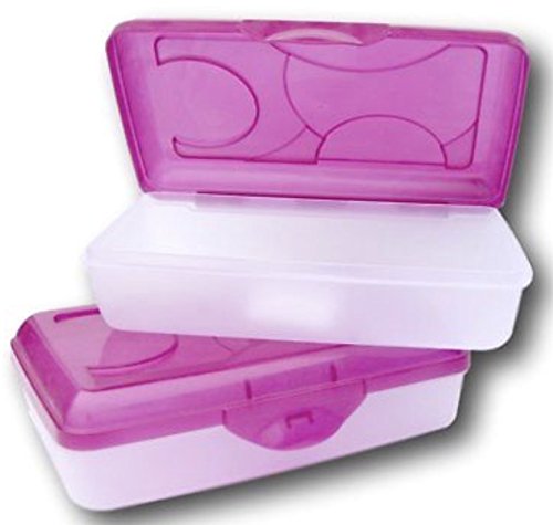 Sterilite Set of 2 Transparent Plastic Pencil Case Box 8 5/8” X 5 3/4” X 2 1/2” PINK LID