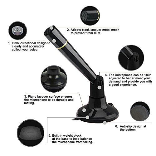 VAlinks® Plug and Play Home Studio Adjustable PC/Desktop/Laptop/Notebook Omnidirectional Condenser Microphone Mic with 3.5mm Plug, Ideal for Skype, FaceTime, Microsoft Cortana, LOL, Youtube (Black)