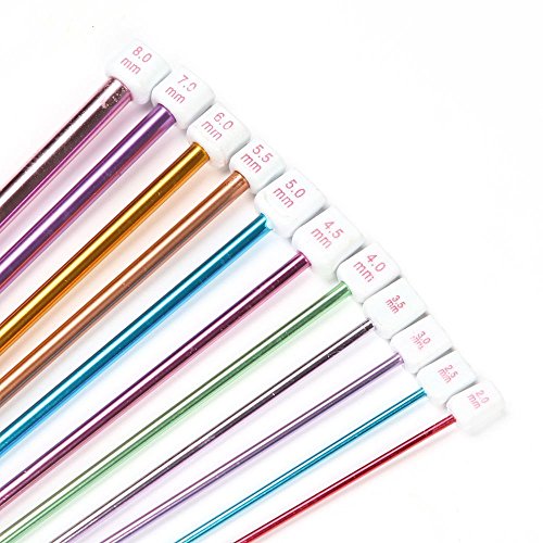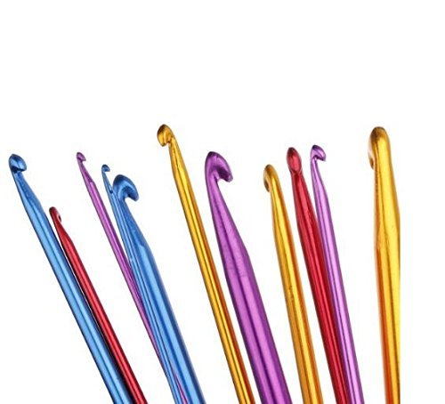 Biowow 11Pcs 2-8mm Different Size 10.5" Multicolour Aluminum Crochet Hook Knit Needles