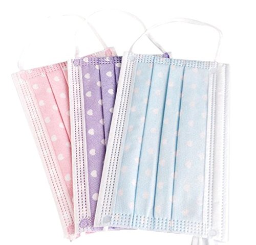 Happy Will 50 Pcs Cute Heart Print Disposable Earloop Face Mask Surgical Dust Filter Mouth Cover with Stylus (Purple)