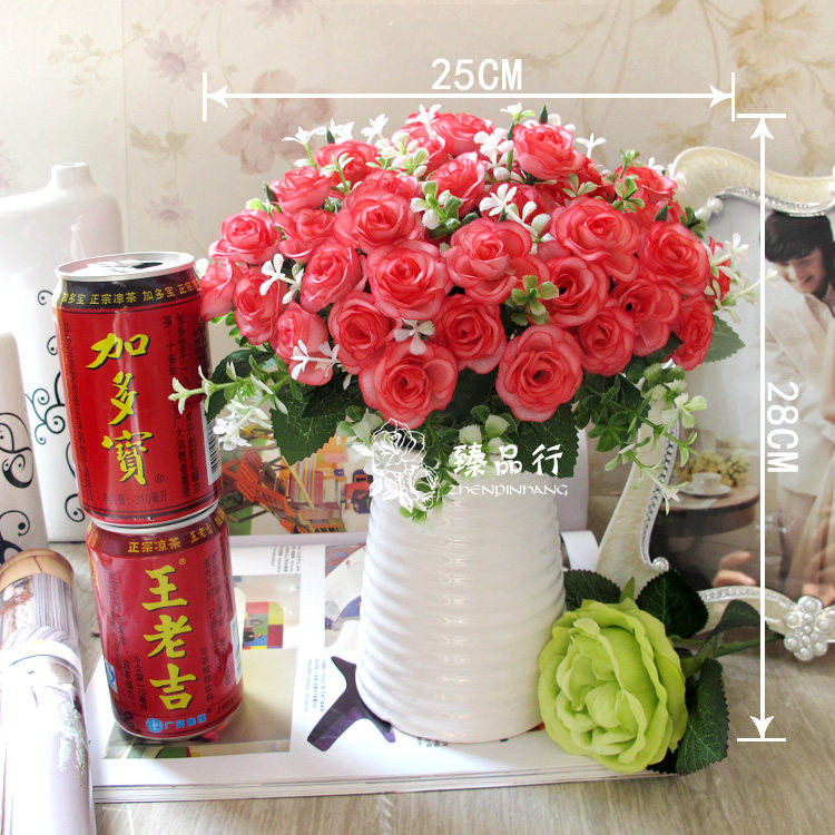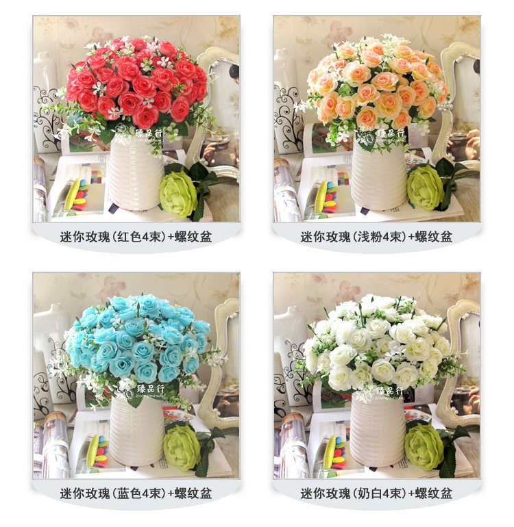 Rose sweetheart (a bunch): pruning about 31CM (up and down can be automatically adjusted), 15 rose flowers (flowers about 4CM diameter), 5 groups of foam gypsophila; 5 fork 15 mini roses (a bunch) About 30CM, a total of 15 roses (diameter of about 3CM), 5 leaves, 5 sets of aquatic plants; Korean small roses (a bunch): The entire length of about 28CM, a total of 15 roses (diameter of about 4CM or so) Group of leaves, five sets of plants; ceramic basin: the mouth (diameter 9cm, diameter 9.5cm) diameter 11cm, height 14cm