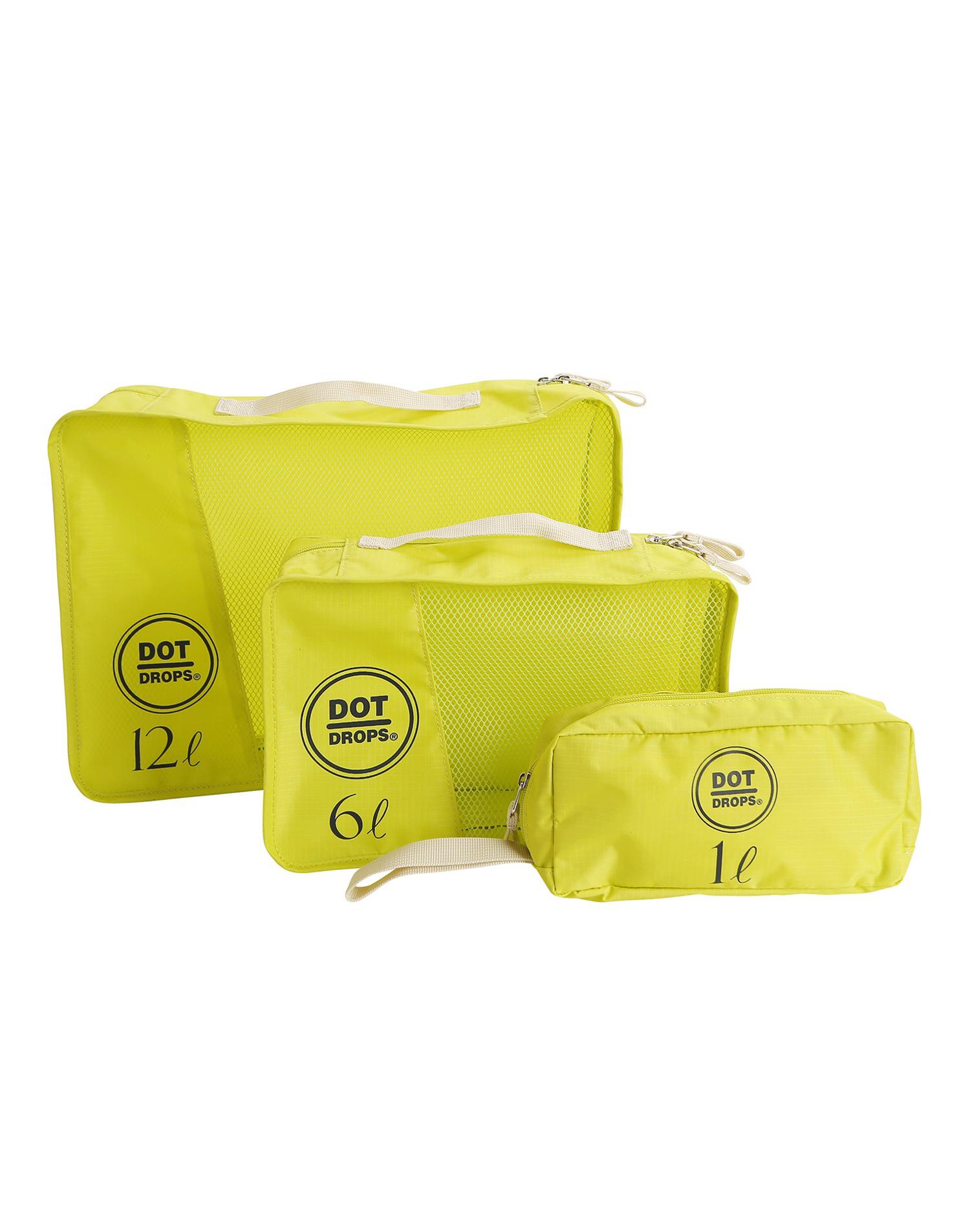 옐로우그린 컬러에 로고장식과 그물망 디테일로 포인트를 준 파우치 셋트 입니다. 다양한 사이즈로 실용성이 돋보입니다.