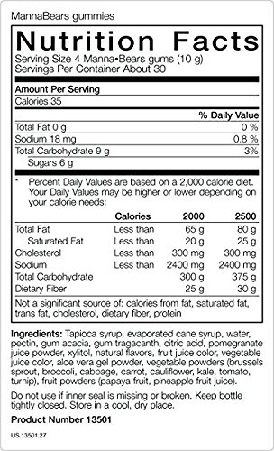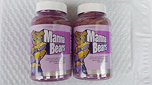 Mannatech MannaBears Brand New and Sealed Fresh MannaBears chewable gummy Bears. Fresh Grape, Punch and Lime flavored Designed especially for kids - colorful, chewy and delicious! Provides the natural goodness of 11 different fruits and vegetables, including pomegranate juice powder, brussels sprout, broccoli, cabbage, carrot, cauliflower, kale, tomato,turnip, papaya and pineapple . These healthy chews contains classic Ambrotose complex.Feature