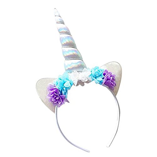 (CREATEASY)/Accessories/Hats/DIRECT FROM USA/Unicorn Headband Shiny Unicorn Horn Lace Flowers Ears Headband Unicorn Birthday Party Decoratio...