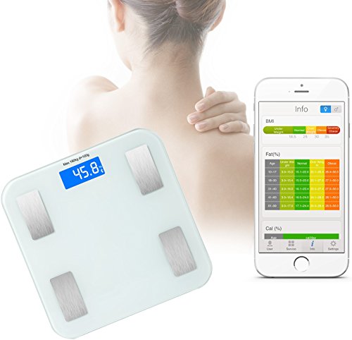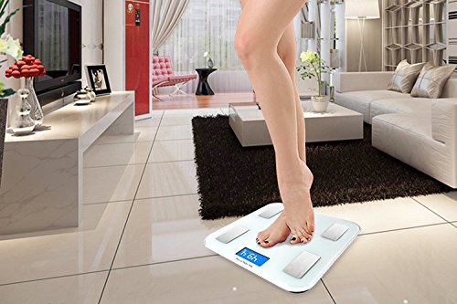 -. Feature : SMART SCALE - Stepping on to get 8 body index measurements with no on/off button. LCD display shows clear weight readings anytime with blue backlight. / SMARTPHONE APP - Works with a user friendly app to measure BMI, body fat percentage, calorie, water percentage, muscle percentage, visceral fat percentage and bone mass. Conveniently syncs health stats of up to 8 users. Monitor your daily health at home, on the go. / DURABLE - Tempered glass surface resists shock and scratches Auto power off, auto zero. Stabilized on ground by bottom support with 4 anti-slip feet at corners. / WIRELESS - User friendly app is compatible with Android and IOS Bluetooth wireless technology. / INDUSTRY LEADING CUSTOMER SUPPORT - You can continue to rely on Electro-Deal to offer the markets most competitive P.R.Ices, paired with industry leading customer support, and all backed by a one year, full manufacturer's warranty on new products or a 90 day limited warranty for refurbished products!