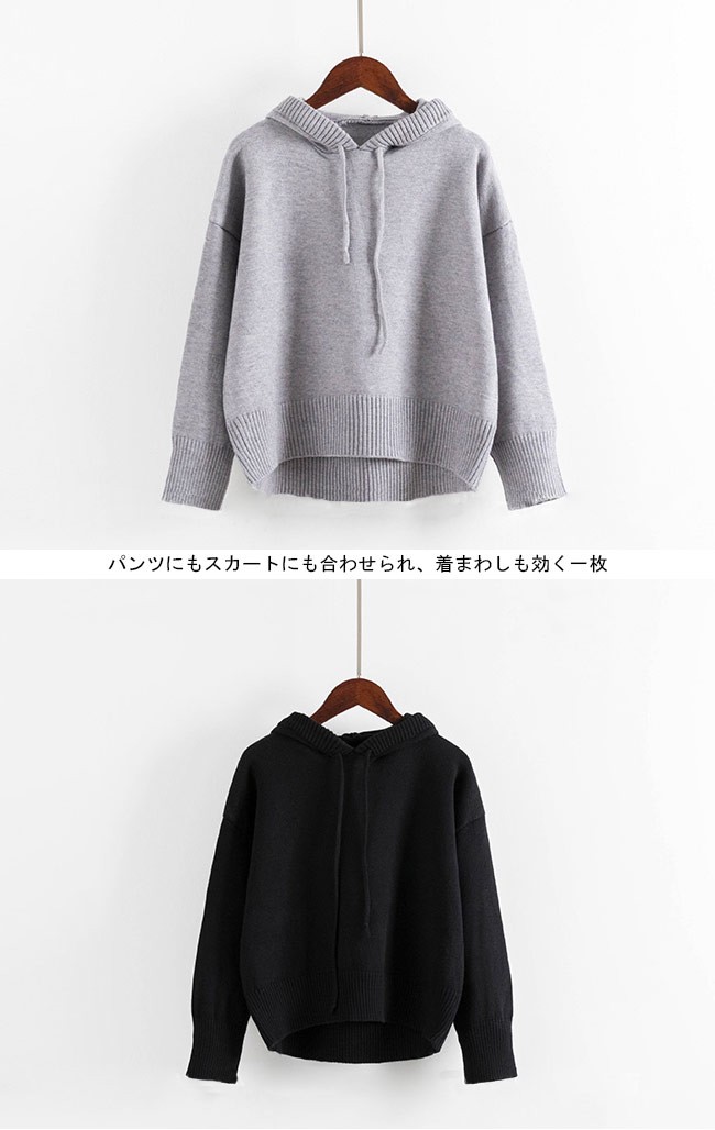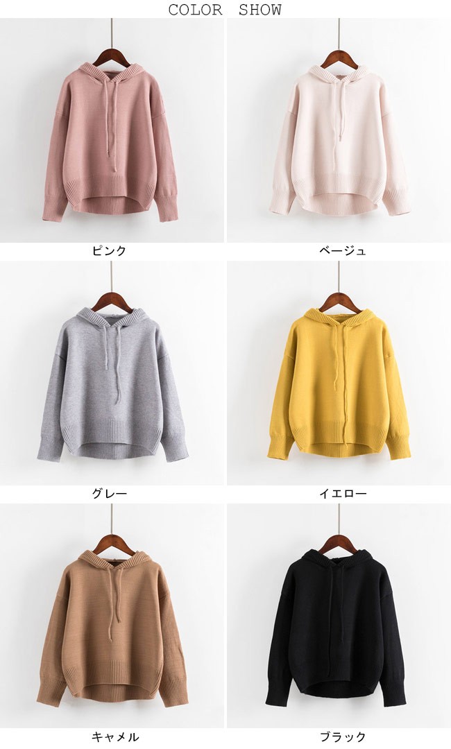 | 商品名 | レディース パーカー ニット 長袖 女性用 ニットセーター フード付き ゆったり 無地 トップス カジュアル 着やせ 着まわし |
