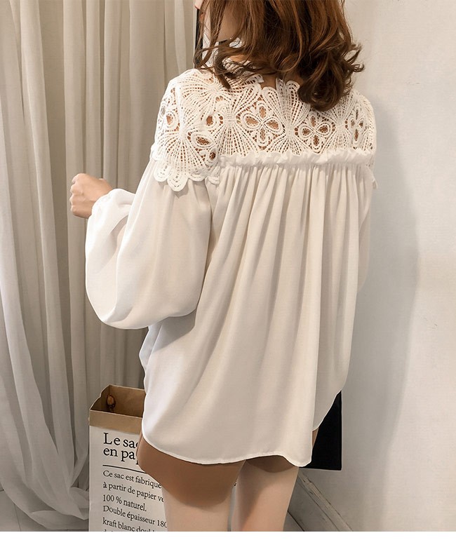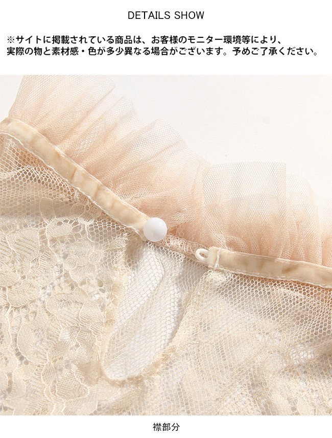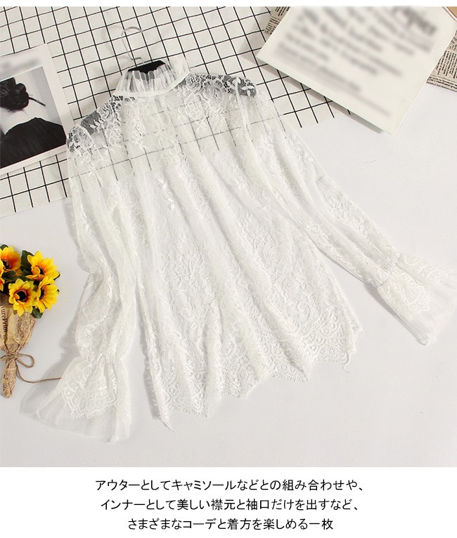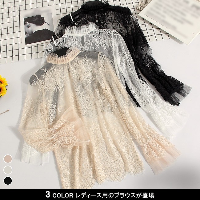 | 商品名 | レディース ブラウス レース 長袖 女性用 シャツ フラフラ トップス ゆったり チュール キュート フリル ハイネック 透かし |
