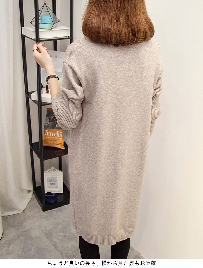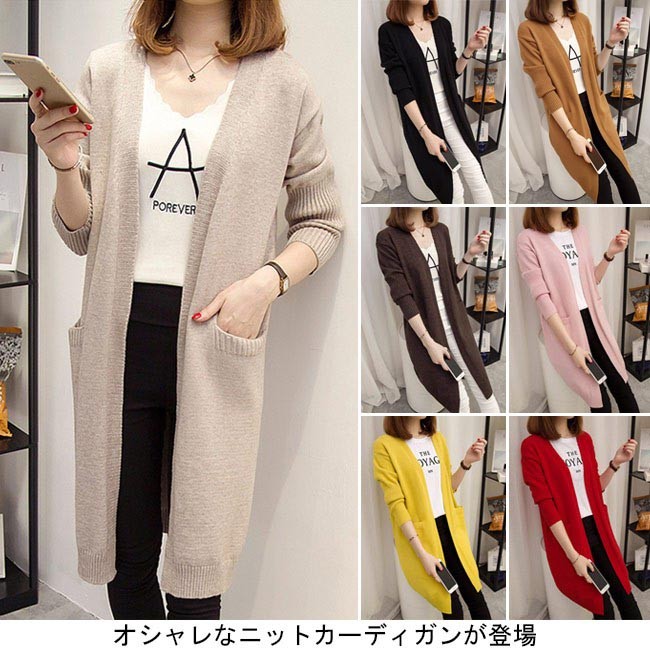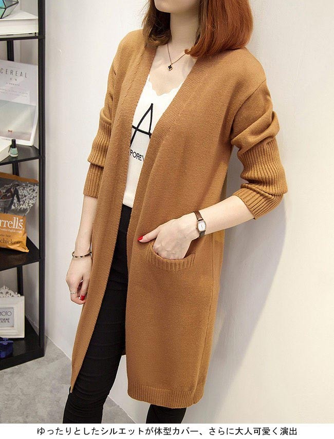 | 商品名 | ニットカーディガン ロング丈 レディース コーディガン 秋服 コート アウター ゆるシルエット 無地 Vネック 春秋 ポケット付き カジュアル オシャレ 羽織り |