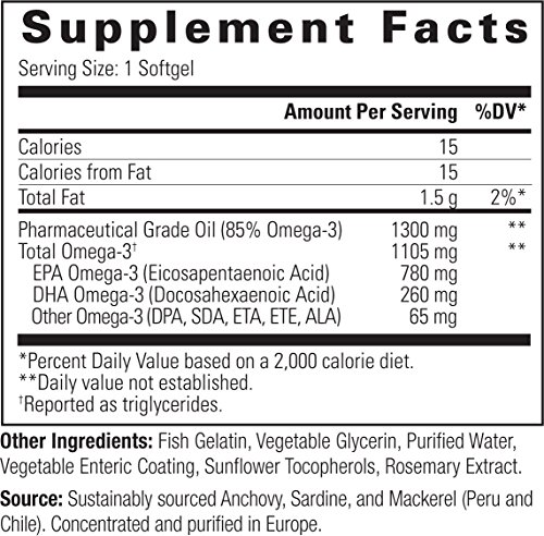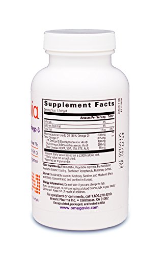 OmegaVia Pharma-Grade Omega-3, Enteric coated. 1105 mg Omega-3 – Ultra-high Omega-3 per pill.