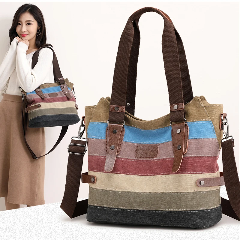 |  | 2018 Fashion Canvas Bag Women Handbags Patchwork C...