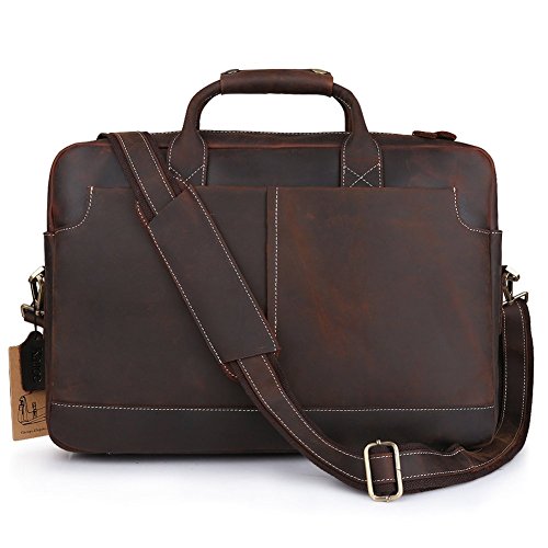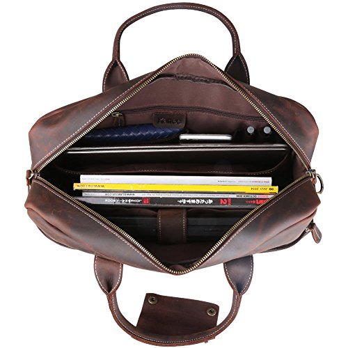 Kattee Vintage Look Top Leather 17" Laptop Briefcase Messenger Bag Tote