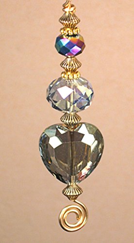 -. Title : Rear View Car Mirror Ornament Amber Green Heart Charm