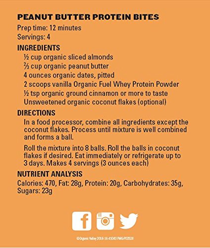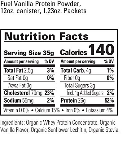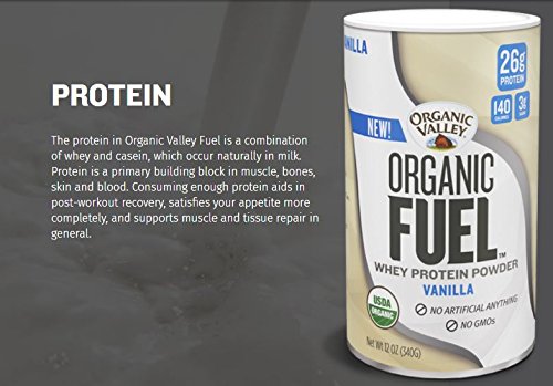 ReleaseDate : 2017-08-26 Studio : Organic Valley Publisher : Organic Valley Binding : Grocery Product Description Organic Fuel Whey Protein Powder is a great-tasting, nutritious, high-protein whey powder. It is ideal for post-workout recovery or meal replacements for athletes looking to increase their protein consumption and support their body’s muscle recovery after physical exertion like biking, running, sports competition and gym workouts. Organic Fuel Whey Protein Powder is packed with protein, natural carbohydrates and essential nutrients from a simple list of organic, fair trade ingredients. It does not contain unnecessary additives you can’t pronounce, artificial flavorings or sweeteners, GMOs, pesticides, antibiotics or hormones. What you?do?get is powerful nutrition from a trusted brand. Organic Valley Organic Fuel Whey Protein Powder contains (per serving) 26 grams of whey protein, only 3 grams of sugar and is a good source of calcium, all in a convenient powder you can take anywhere and mixes smoothly into liquids (water, milk or juice). Organic Fuel Whey Protein Powder comes in two delicious flavors: Vanilla and Chocolate. 0