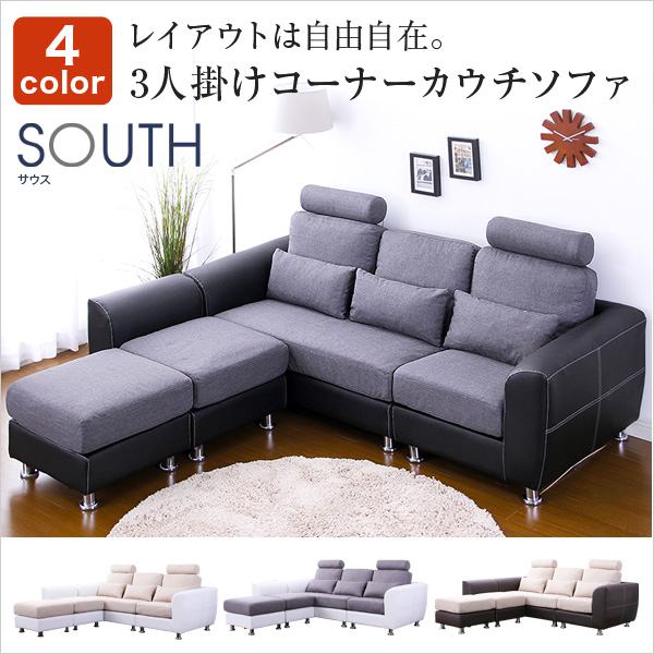 3人掛けコーナーカウチソファ【サウス-South-】