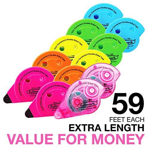 Fullmark Back To School Value Pack Permanent Adhesive / Glue Roller, 6mm X 18m each, Assorted Colors, 10-pack + 2 FREE Pink Escal Glue Roller worth 6.99 each