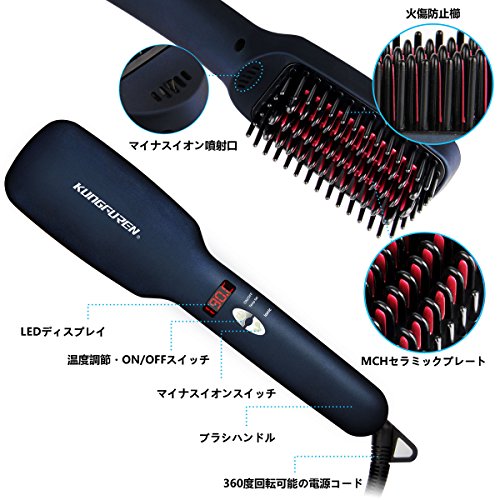 원본상품명: ヘアアイロン ブラシ kungfuren ストレト ブラシヘアアイロン マイナスイオン ストレトブラシ くし型アイロン 150℃-230℃電熱ブラシ 火傷防止 耐熱手袋付き