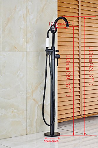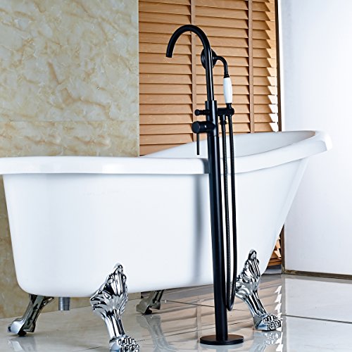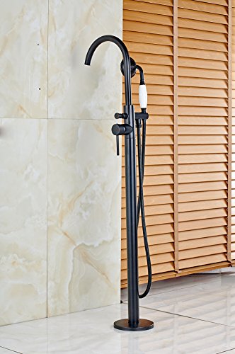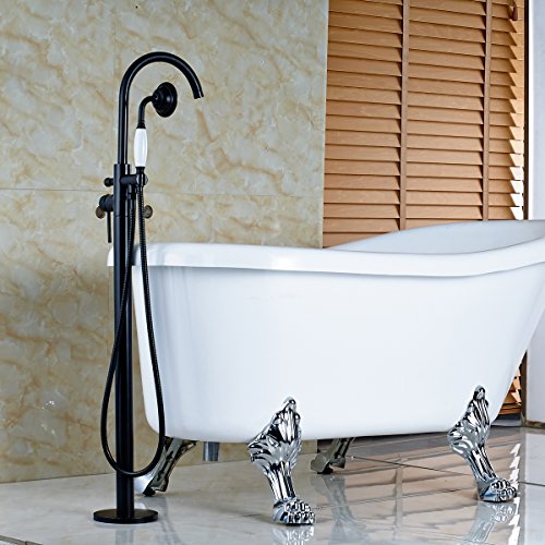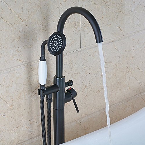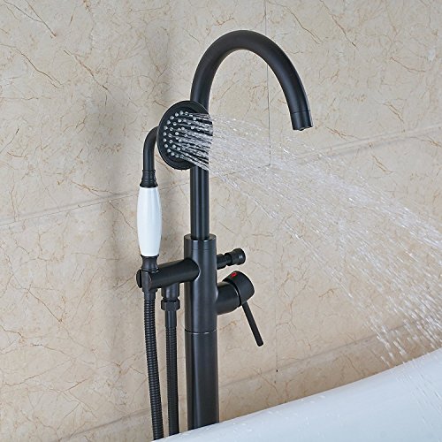Votamuta Oil Rubbed Bronze New Floor Mounted Bathroom Tub Shower Faucets Free Standing Bathtub Shower Mixer Taps Single Lever with Hand Sprayer