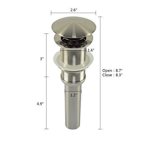 PHASAT Brushed Nickel Finish Pop up Vessel Basin Sink Drain Stopper without Overflow, A13109N