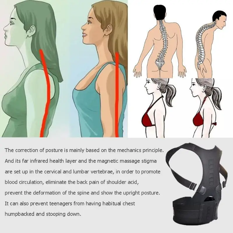 The correction of posture is mainly based on the mechanics principle. And its far infrared health layer and the magnetic massage stigma are set up in the cervical and lumbar vertebrae, in order to promote blood circulation, eliminate the back pain of shoulder acid, prevent the deformation of the spine and show the upright posture.