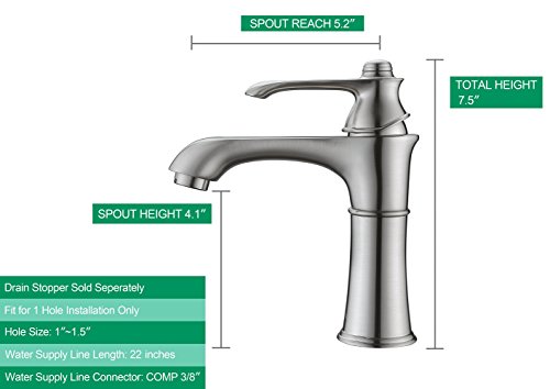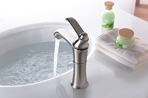 Purelux Wise Classic Lavatory Sink Faucet One Handle Control, Brushed Nickel Bathroom Faucets