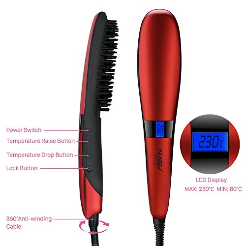 Elehot Nasv Electric Hair Straightening Brush (450℉/230°C Adjustable Temperature, Rapid Heating Technology, Suitable for 100V-240V, Auto Lock, Anti-scald )