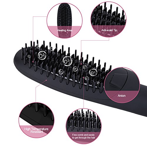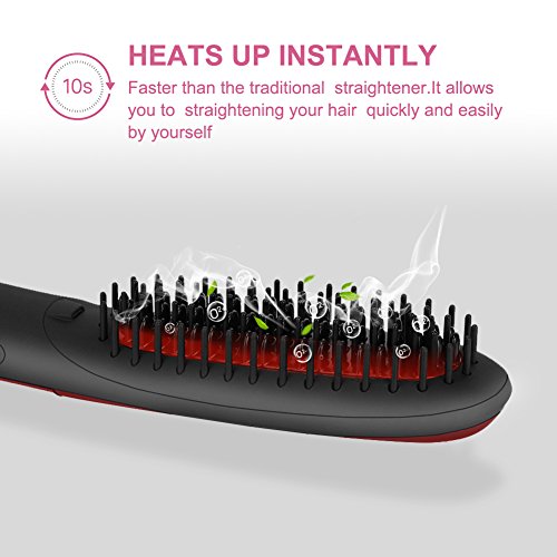 ✔PORTABLE DESIGN:This portable heat brush is specially designed to be slimmer and lighter.It allows you to straighten hair at home or while traveling easily because of its portable and powerful design