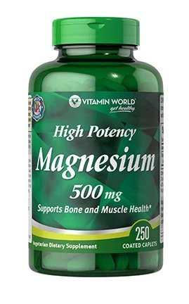 DESCRIPTION • Magnesium supports bone health** • Promotes muscle health** • Convenient one-a-day dose Magnesium is an essential mineral that's essential for bone structure and mineralization.** It's also involved with muscle contractions, nerve impulses, and energy metabolism.** Just one caplet a day provides you with a high-potency source of Magnesium. 250 coated caplets. Read Less Gluten Free Vege Coated LABEL INFORMATION Supplement Facts Serving Size 1 Caplet Amount Per Serving Daily Value Magnesium (as Magnesium Oxide)500 mg 125% DIRECTIONS: For adults, take one (1) caplet daily, preferably with a meal. Other Ingredients: Vegetable Cellulose, Dicalcium Phosphate. Contains <2% of: Citric Acid, Titanium Dioxide Color, Vegetable Magnesium Stearate.