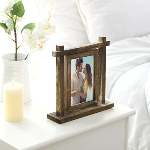 MyGift Torched Wood Tabletop Double-Sided Swivel 4 X 6 Picture Frame Photo Holder