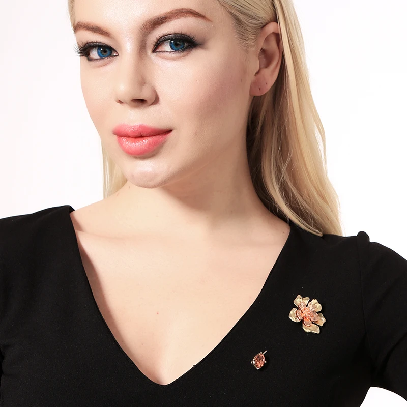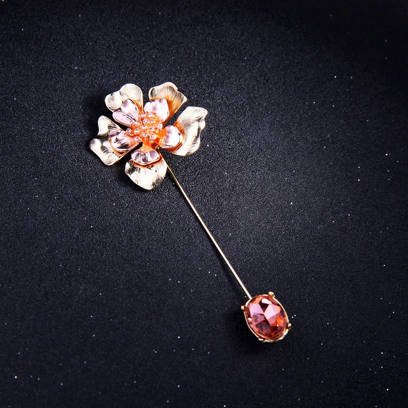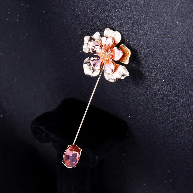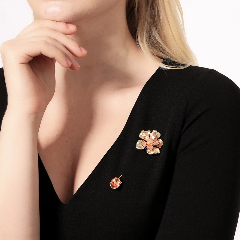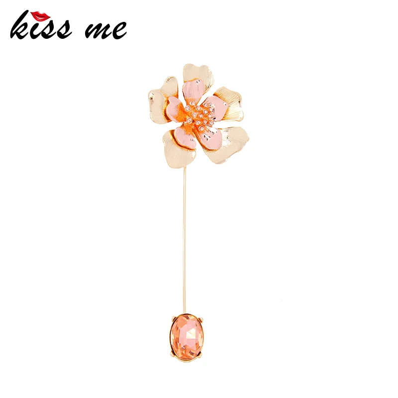Production name ::KISS ME Gold Color Alloy Crystal Flower Brooch Collar Pin