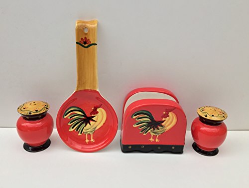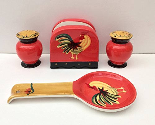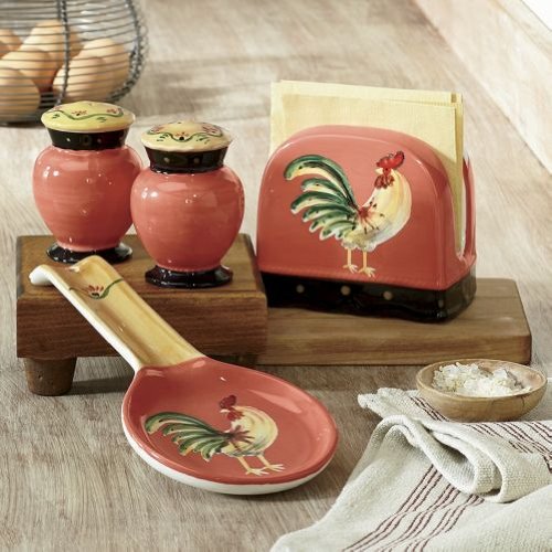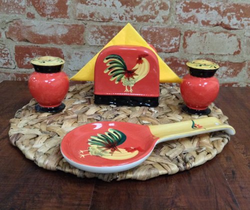 Tuscany Modern Burnt Orange Rooster Hand Painted Table Top Set of 4pcs, 85025/28 by ACK