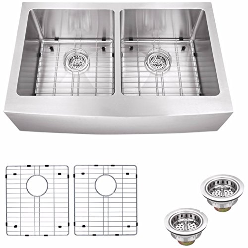 - 16 gauge stainless steel composition gives the traditional farmhouse sink format a touch of modern design aesthetic